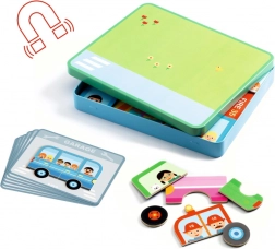 Praktična magnetička konstrukcijska igra s kojom djeca u trenu slože vlastita auta, kamione i strojeve izravno na metalnoj kutijici. Idealno za putovanja, razvija finu motoriku, kreativnost i maštu – sve pregledno pohranjeno u praktičnom boxu.