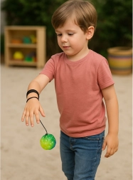 Podesiva elastična zapešćena traka prilagođava se većini ruku i osigurava udobno i sigurno nošenje. Proizvod je odličan za djecu, mlade i odrasle – kao dodatak treningu, za školske i kućne vježbe ili zabavnu aktivnost u dvorištu i na igralištu. Boja loptice je uvijek živa i bira se nasumično.