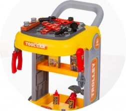 Jednostavno premještanje zahvaljujući čvrstoj ručki i kotačima. Djeca mogu ponijeti svoju radionicu bilo kamo i imati alat uvijek pri ruci.