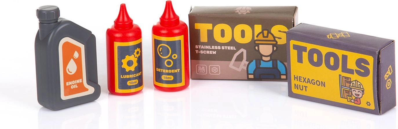 Sastavni dio su dječji alati i spojni elementi za zavrtanje, sastavljanje i vježbanje spretnosti i mašte.