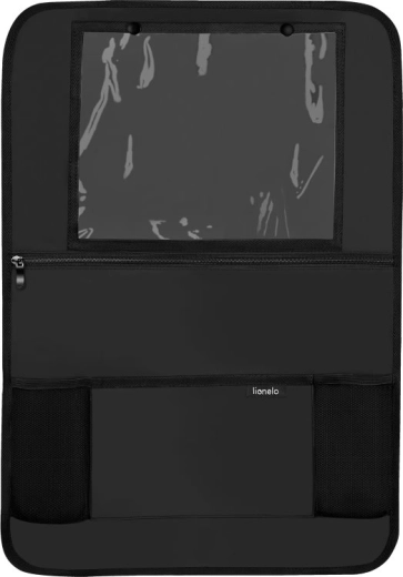 Održavajte unutrašnjost vozila urednom i čistom uz autosjedalni organizator LIONELO u univerzalnoj crnoj boji. Jednostavno se postavlja na stražnju stranu prednjih sjedala pomoću čvrstog remena s kopčom i odmah pruža praktičan prostor za odlaganje dječjih potrepština, osvježenja, igračaka i elektronike. Prozirni džep za tablet omogućuje djeci gledanje crtića ili igranje igara bez vađenja uređaja.