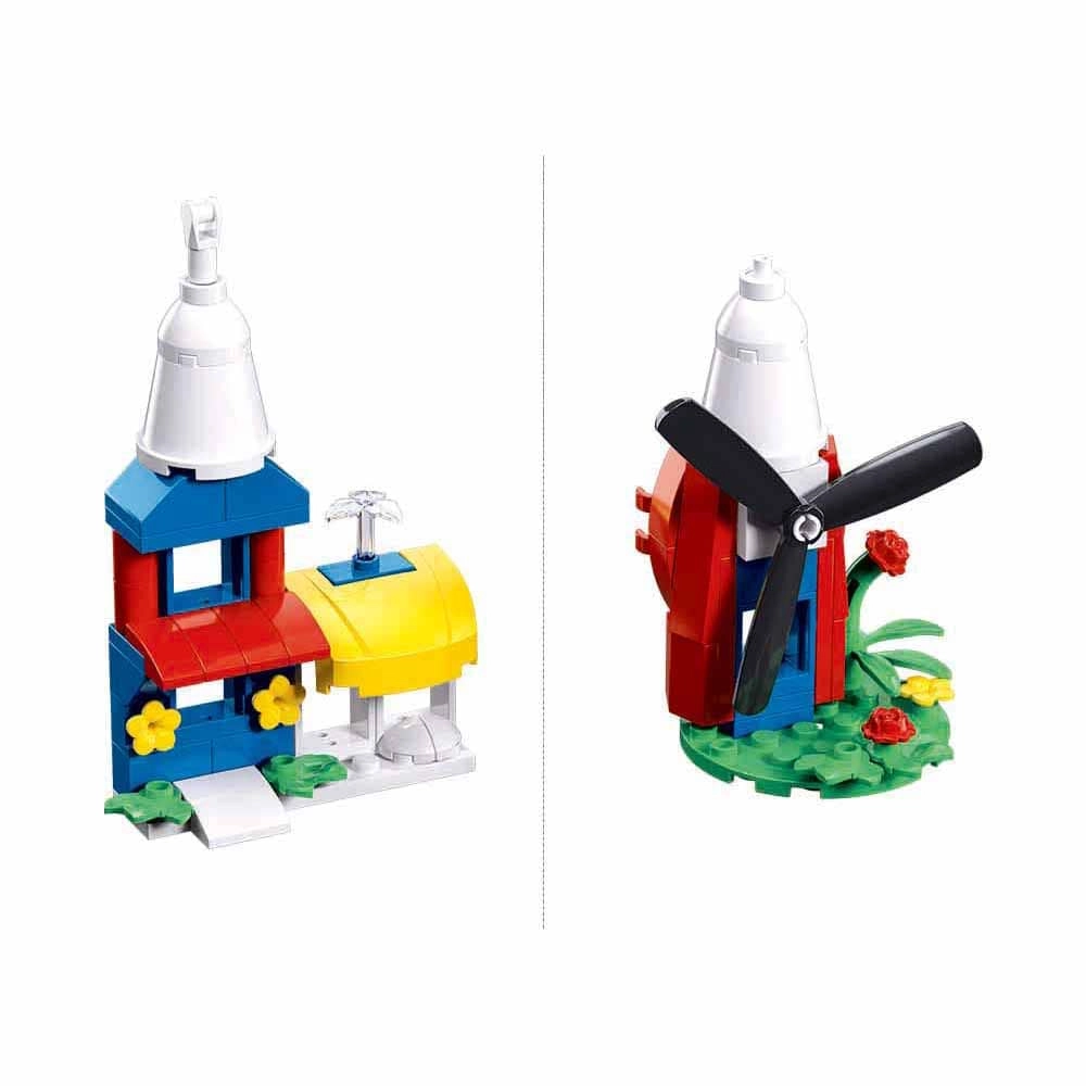 Iz jednog seta složit ćete raznolike modele – kućicu s cvijećem i vjetrenjaču s rotirajućim lopaticama. Kreativna zabava koja ne dosadi.