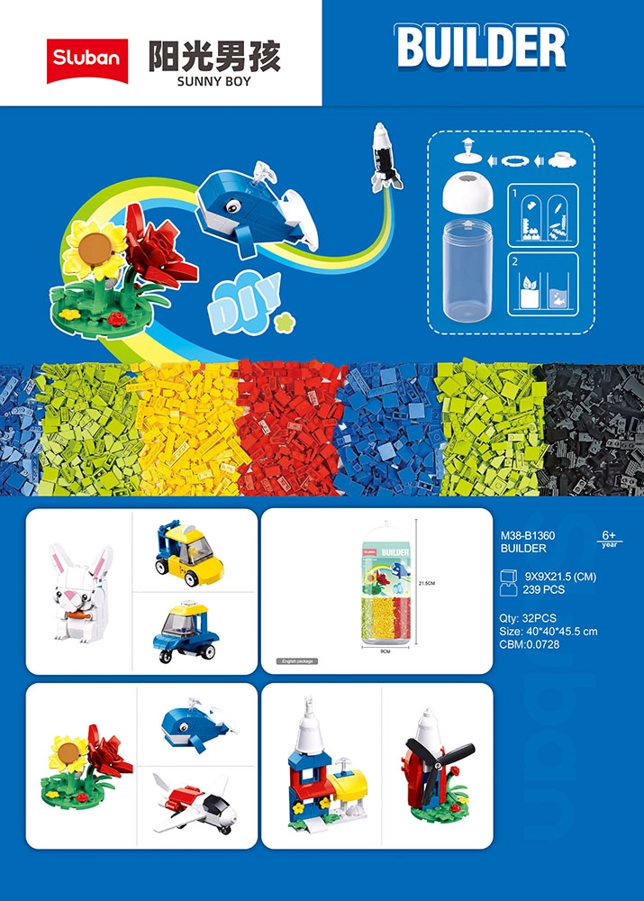 Otkrijte kreativni svijet sa setom za slaganje Sluban Builder 6 u 1! Od 239 dijelova djeca mogu složiti avione, vozila, životinje i cvijeće. Set je kompatibilan s drugim setovima za slaganje, izrađen od sigurne ABS plastike i potiče kreativnost, maštu i finu motoriku. Praktična kutija za jednostavno odlaganje i upute za sastavljanje dio su pakiranja.