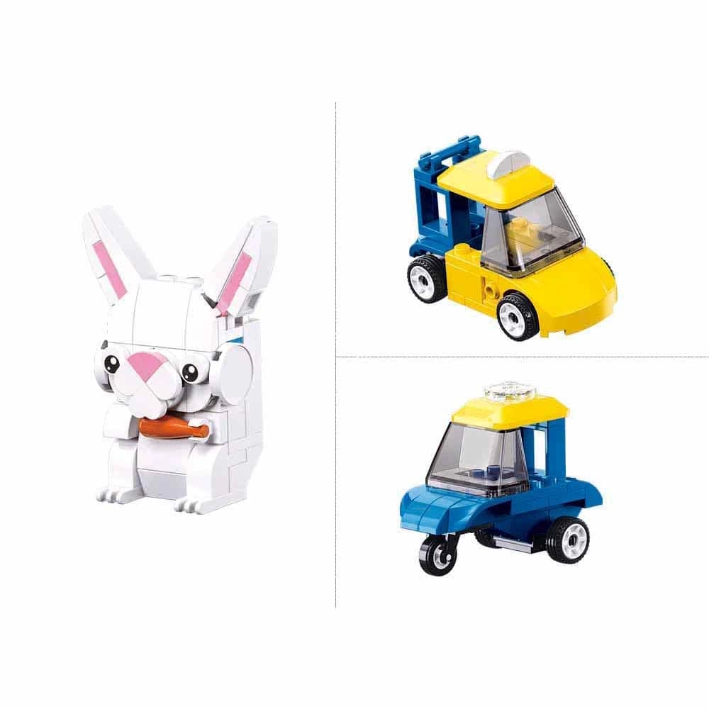 Set za slaganje Sluban Builder 6 u 1 donosi zabavu i učenje u jednom. Iz jednog seta možete složiti nekoliko različitih modela – od aviona i vozila do zeca, cvijeća ili malih scenica. Zahvaljujući kompatibilnosti s LEGO, COBI i Mega Bloks setovima lako ćete proširiti svoje kreacije i dodati nove ideje.