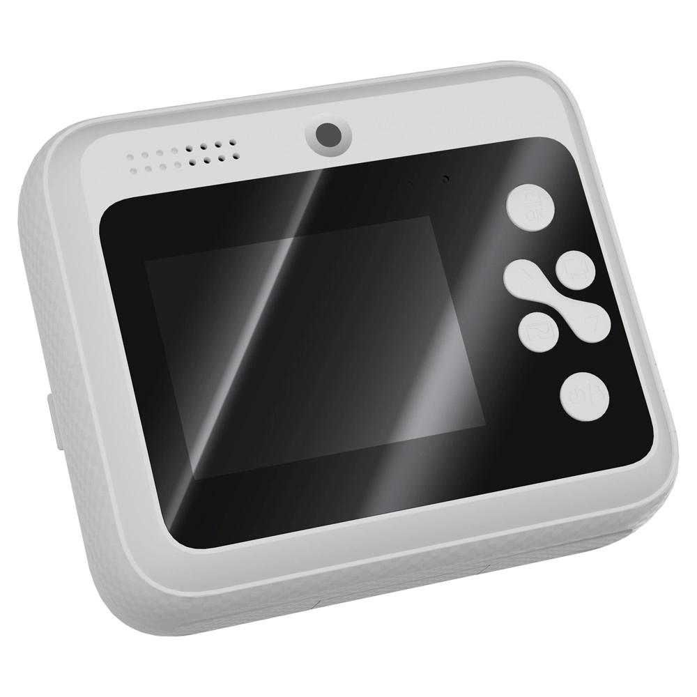 Na 2,4" zaslonu u boji djeca lako pregledavaju snimke, biraju načine rada i podešavaju postavke. Selfie način olakšava autoportrete i grupne fotografije, četiri ugrađene igre pružaju dodatnu zabavu. S baterijom 1200 mAh traje do 6 sati rada, a punjenje je praktično preko USB‑C. Memorija se može proširiti karticom microSD do 32 GB, a u pakiranju se nalaze 2 role termalnog papira, vezica i naljepnice.