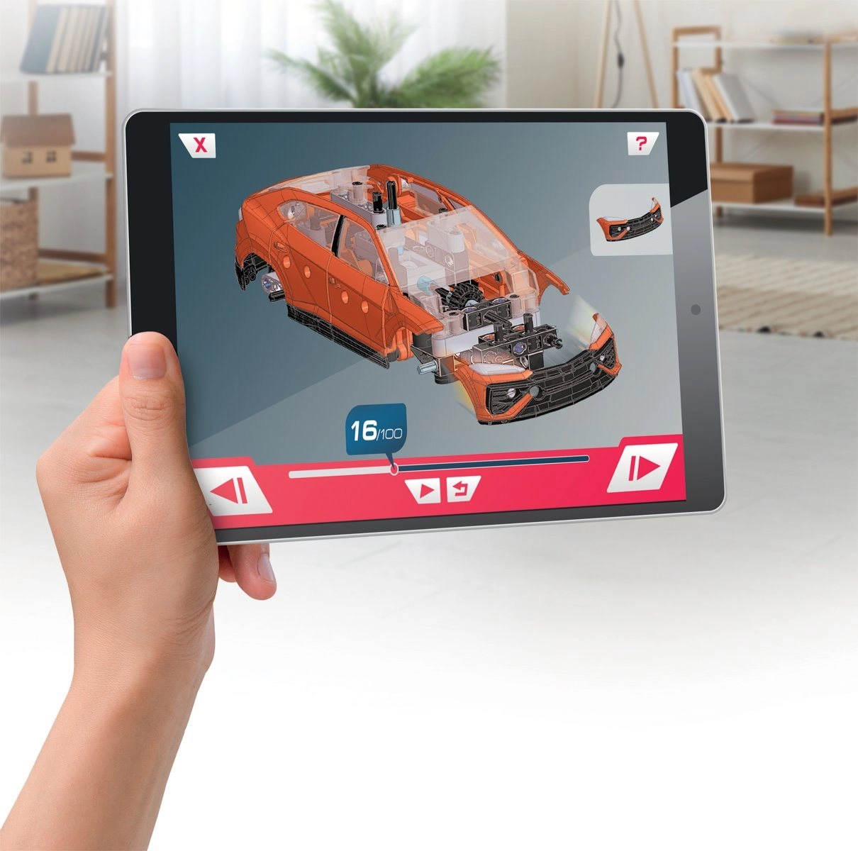 Za još bolje iskustvo moguće je besplatno preuzeti aplikaciju SCIENCE & PLAY BUILD putem QR koda na ambalaži. Za rad su potrebne 4× AA (1,5 V) baterije, koje nisu uključene u pakiranje.