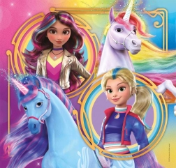 Otkrijte svijet čarobnih jednoroga s prekrasnim setom od tri slagalice, idealnim za djecu. Svaka slagalica ima 48 dijelova i nakon slaganja doseže dimenzije cca 21 × 20,5 cm. Zahvaljujući čvrstoj kartonskoj konstrukciji dijelovi se ugodno slažu i dobro uklapaju.