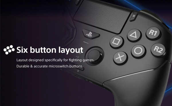 - Osmerokutna analogna palica, 6 tipki za borilačke igre, programabilne stražnje tipke, D‑pad (3 izmjenjiva stila), taktilne ramene tipke