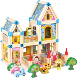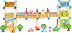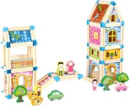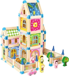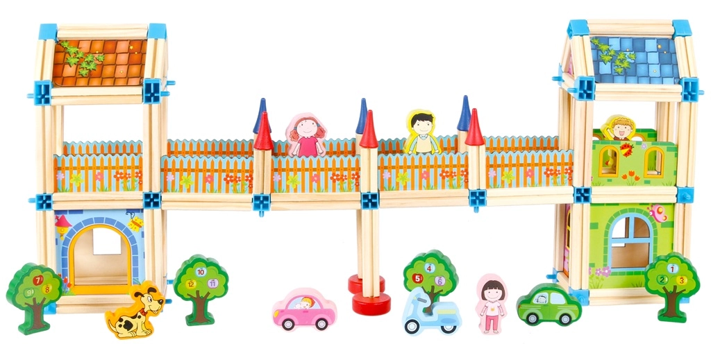 Ova kreativna građevinska igračka osmišljena je da raste s vašom djecom. Robusni drveni dijelovi u kombinaciji s plastičnim spajalicama omogućuju gradnju stabilnih i raznolikih konstrukcija – od malih kućica do monumentalnih dvoraca. Kontrasti boja i razni oblici potiču logičko razmišljanje i prostornu maštu.