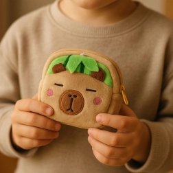 Ovaj plišani novčanik – kapibara razveselit će djecu i ljubitelje slatkih dodataka. Meki materijal je ugodan na dodir, patentni zatvarač čuva kovanice, ključeve i sitnu opremu na sigurnom, a zahvaljujući praktičnoj kopči novčanik je uvijek pri ruci.