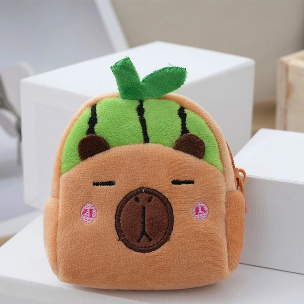 Sladak i praktičan mini novčanik u obliku kapibare s motivom zelene lubenice. Zahvaljujući mekom plišu ugodan je na dodir, ima zatvaranje na patentni zatvarač za sigurno spremanje sitnica i plastičnu kopču za pričvršćivanje na ruksak ili ključeve. Kompaktne dimenzije 9,5 × 8 cm stanu u džep, torbu i školski ruksak.