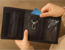 Zahvaljujući brzom zatvaranju na čičak djeca imaju sve sigurno zatvoreno, a istovremeno odmah pri ruci. Unutra se nalaze mali džep na patent za kovanice, pretinac za novčanice, prozirni prozorčić za iskaznicu ili fotografiju i metalna kukica/karabiner za pričvršćivanje ključa ili privjeska.