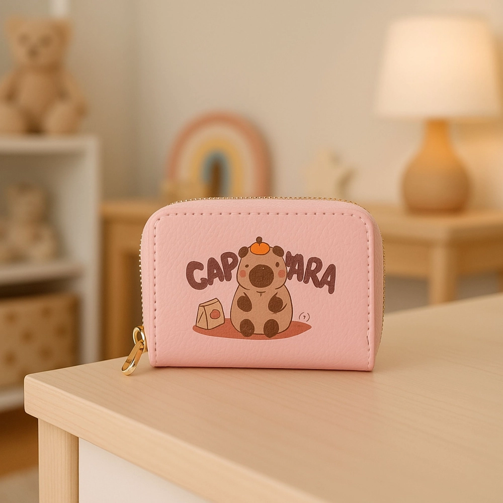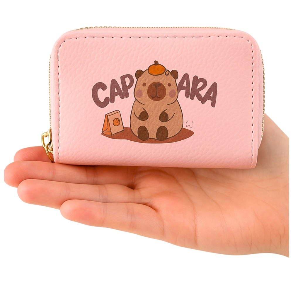 Kompaktan ružičasti novčanik s preslatkim motivom KAPIBARE spaja dvije odvojene komore na patentni zatvarač s harmonika unutarnjom organizacijom za kartice, novčanice i kovanice. Izdržljiv materijal s teksturom kože, sigurno zatvaranje patentnim zatvaračem i praktične dimenzije 12,5 × 8,5 × 4,5 cm čine ga idealnim izborom za torbicu, ruksak ili torbicu oko struka.