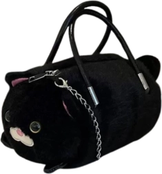 Preslatka plišana torbica u obliku mačke u elegantnoj crnoj boji spaja stil i funkcionalnost. Mekana, baršunasta površina, izraženi mačji detalji i praktične dvostruke ručke upotpunjeni su odvojivim metalnim lancem za nošenje preko ramena. Zatvaranje patentnim zatvaračem štiti vaše sitnice, a kompaktne dimenzije idealne su za svaki dan i kao divan poklon.