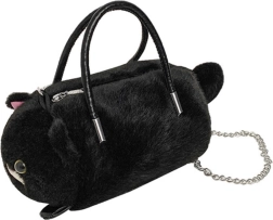 Ova crna plišana torbica u obliku simpatične mačkice oduševljava mekom površinom i pažljivo izrađenim detaljima – uškama, očima i repićem. Zahvaljujući kompaktnim dimenzijama odlična je za nužnosti, bilo da je ponesete u grad, u školu ili kao razigrani akcent uz ležerne outfite.
