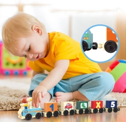 Ovaj edukativni vlak odličan je izbor za prve korake u svijetu abecede i računanja. Djeca sama sastavljaju lokomotivu i vagone, postavljaju šarene kocke i mogu ih ukrasiti naljepnicama. Igra potiče maštu, poboljšava koordinaciju oko–ruka i motivira na otkrivanje.