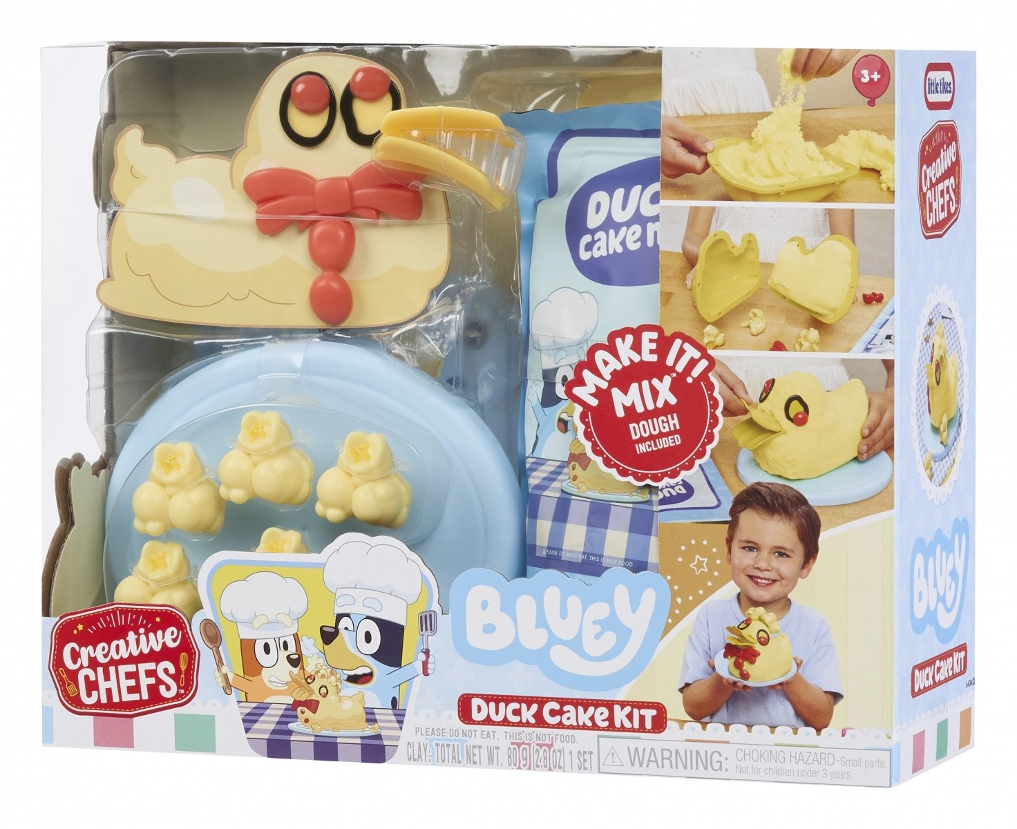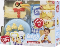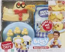 Set CREATIVE CHEFS BLUEY – torta „Pačić“ donosi djeci sate zabave i razvija njihovu maštu. Sadrži 15 realističnih kuhinjskih dodataka, kalup u obliku pačića i formabilnu masu Make It! Mix. U paketu je i recept sa slikama koji uči djecu pratiti jednostavne upute te potiče kreativnu igru i uloge.