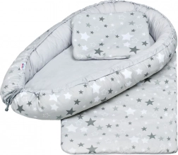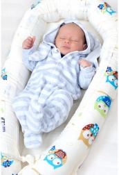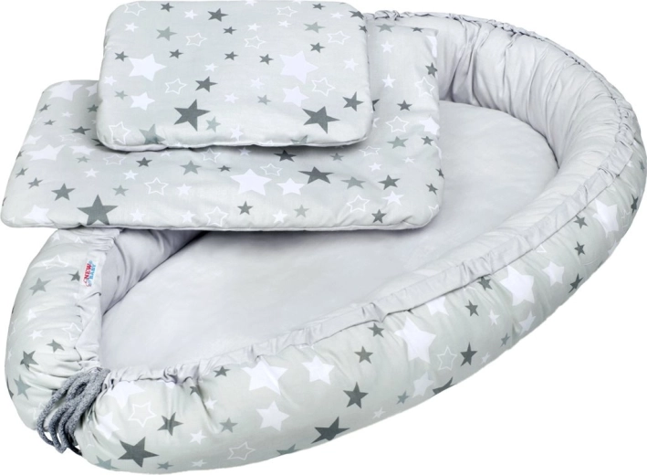 Luksuzno dječje gnijezdo NEW BABY stvara ugodno i zaštićeno okruženje koje novorođenčadi podsjeća na osjećaj sigurnosti iz mamine utrobe. Zahvaljujući kompaktnim dimenzijama lako ga premjestite iz kreveta u kolica ili na kauč, pa beba može odmarati uvijek u vašoj blizini.
