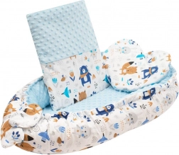 U pakiranju se nalazi i slatki jastučić u obliku srca te poplun ukrašen srcem, koji usklađuju izgled i funkcionalnost. Gnijezdo možete koristiti u krevetiću, kolicima, na sofi ili na podu, što ga čini praktičnim pomagačem za svaki dan.