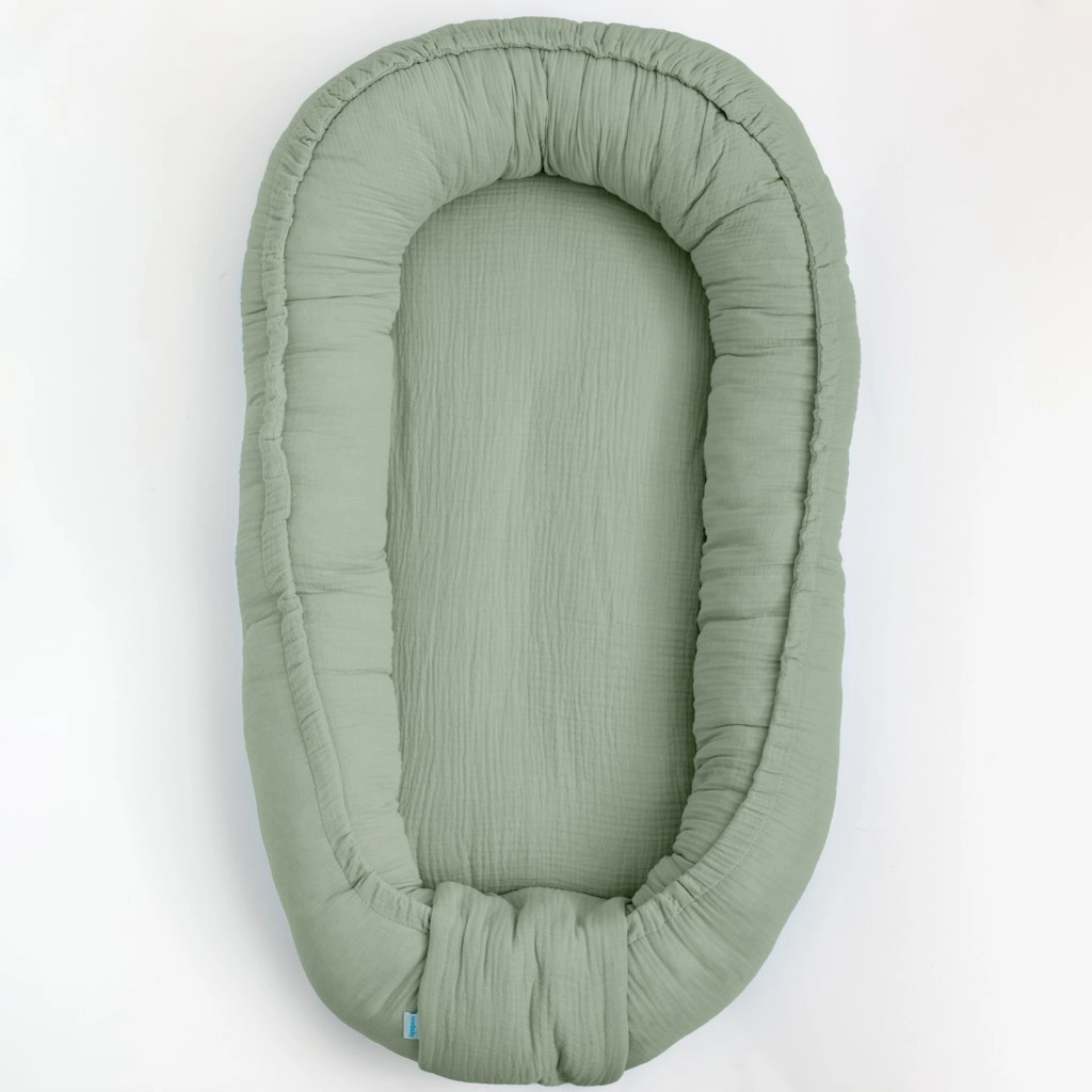 Mušelinsko gnijezdo za bebe New Baby u elegantnoj kaduljastoj nijansi izrađeno je od iznimno meke pamučne pređe. Pruža bebi ugodno i omeđeno okruženje koje potiče osjećaj sigurnosti i miran san. Zahvaljujući laganoj konstrukciji, lako ga prenosite kamo god poželite – u krevetić, na sofu, na pod ili u kolica.