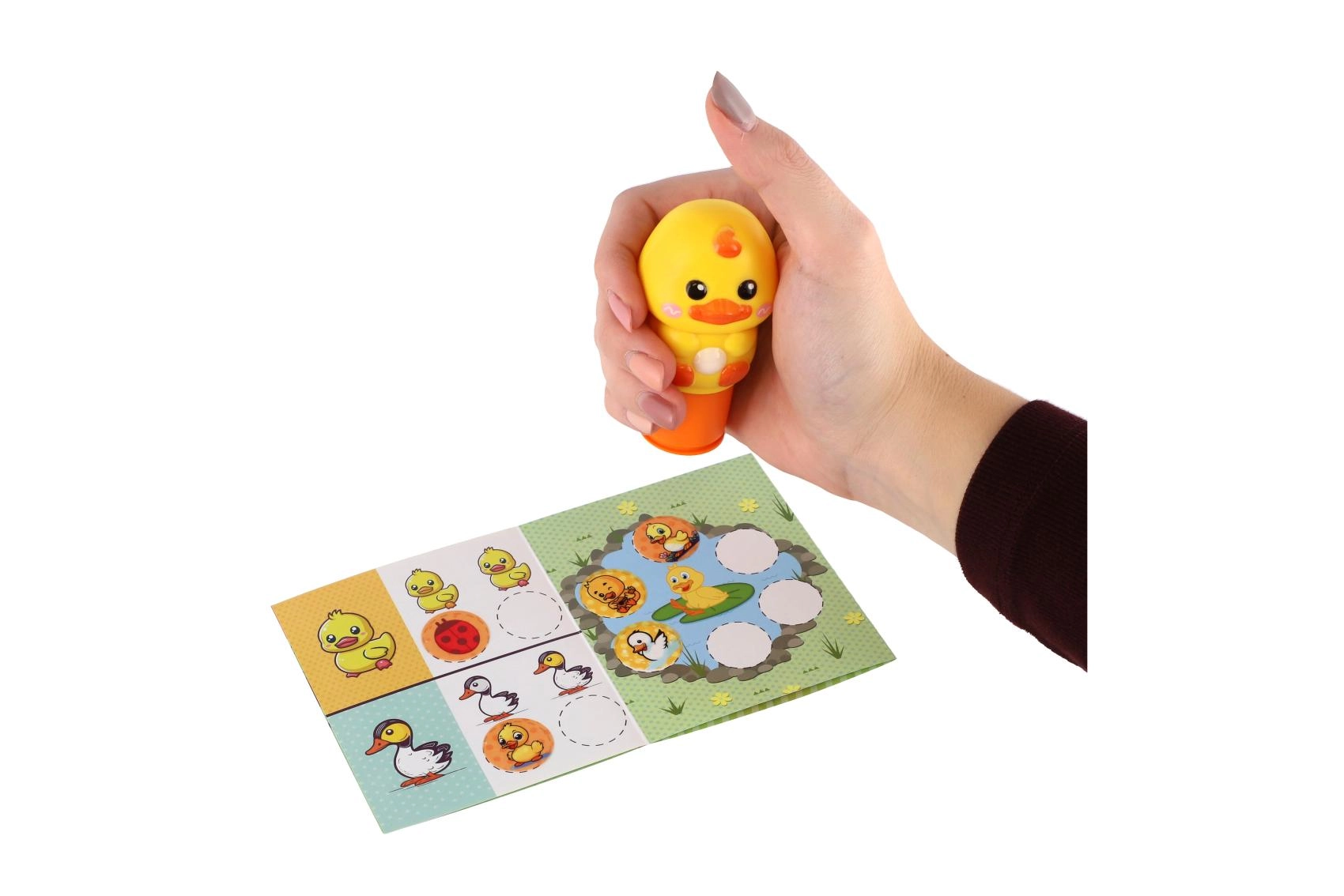 Preslatki dječji žig u obliku pačića s priloženim naljepnicama razveselit će sve male kreativce. Zahvaljujući ergonomskom obliku lako se drži, daje čiste otiske te razvija finu motoriku i kreativnost. U kompletu je i tematski list za lijepljenje. Idealan za kućno stvaranje, vrtić i kao poklon. Kreativna zabava, jednostavna upotreba, sladak dizajn pačića i naljepnice u pakiranju.