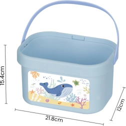 Sve pospremite u izdržljivu kantu s ručkom, čiji poklopac služi kao igraća ploča. Set potiče koordinaciju oko–ruka, prepoznavanje boja i oblika te kreativnu igru. Sjajan izbor za smisleno zabavljanje kod kuće i na putu.