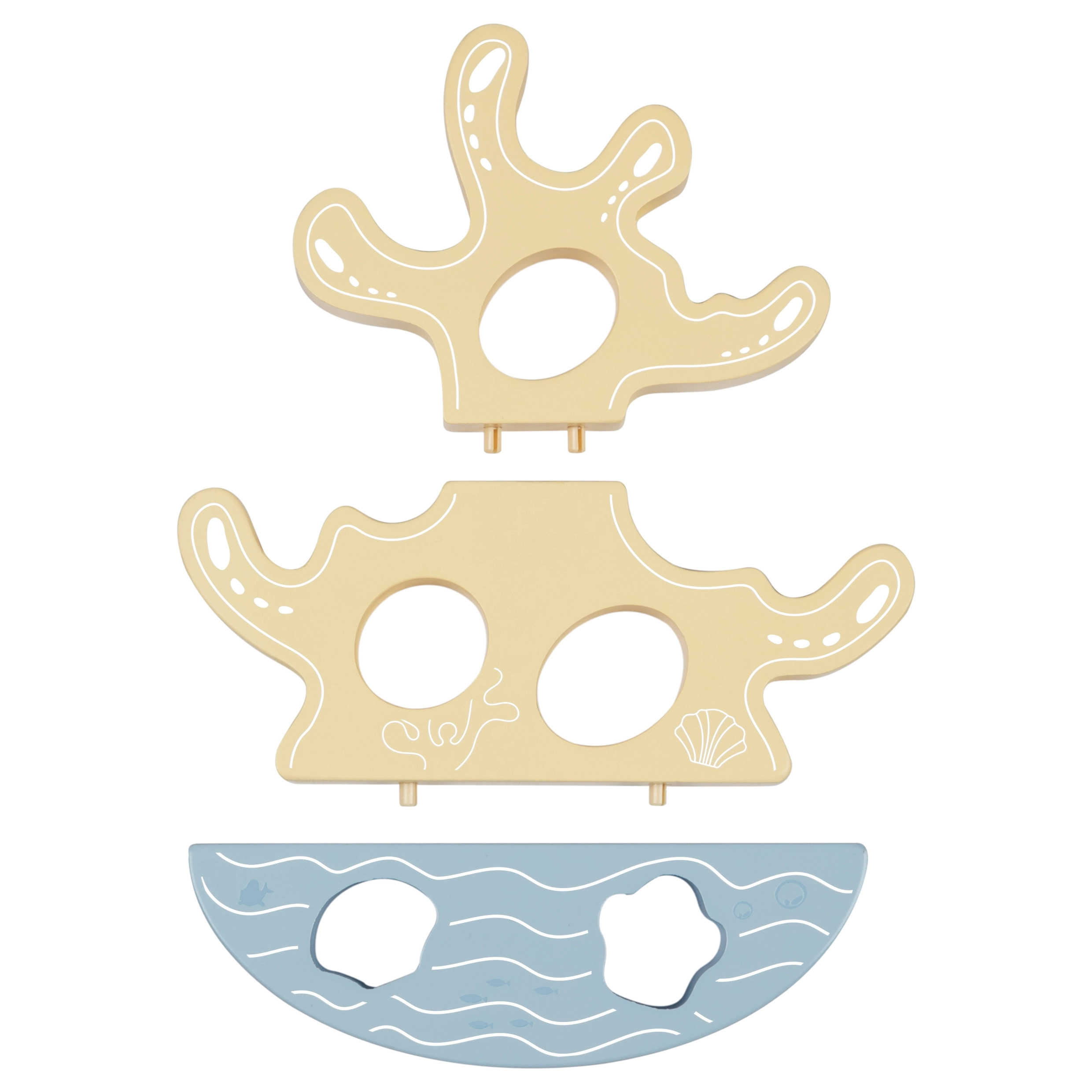 Koraljni toranj na njihajućoj bazi potiče slaganje i balansiranje. Razvija finu motoriku, logiku i prostornu percepciju na razigran način.