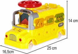 Interaktivni autobus spaja vozilo i mini radionicu u jednom. Djeca mogu voziti, uvrtati vijke, isprobavati lokote s ključevima, okretati volan i istraživati “motor” ispod podizne haube. Raznoliki zadaci prirodno razvijaju finu motoriku, strpljenje i rješavanje problema.