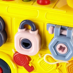 Tri lokota s pripadajućim ključevima uče logici, strpljenju i prepoznavanju oblika. Idealno za izgradnju fine motorike i koncentracije.