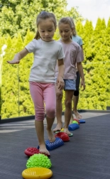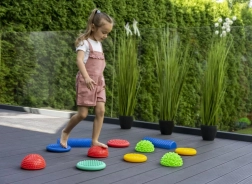 Senzorička staza s 11 šarenih elemenata kombinira kupole, diskove i poluvaljke s različitim teksturama za raznolik trening. Djeca mogu preskakivati s „kamena” na „kamen”, razvijati stabilnost gležnjeva, držanje tijela i grubu motoriku, a odrasli je mogu koristiti za aktivno vježbanje ravnoteže i masažu stopala.