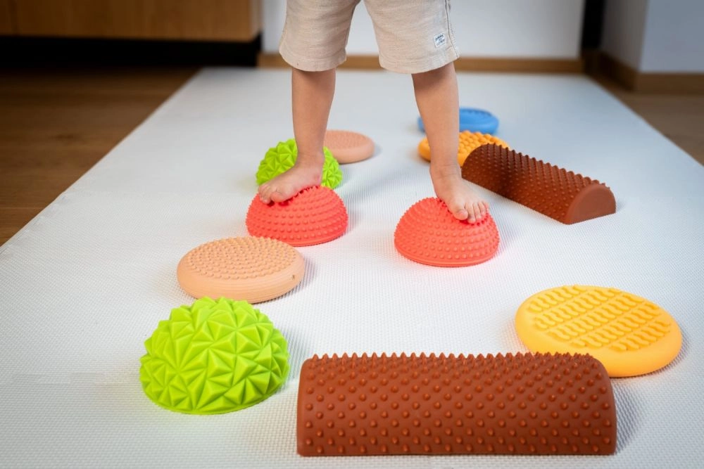 Polukupole, diskovi i poluvaljci s izbočinama i uzorcima aktiviraju receptore stopala, poboljšavaju propriocepciju i podržavaju prirodan odval stopala.