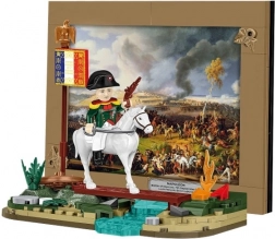 Središnji element je detaljna minifigura Napoleona u tipičnoj pozi u sedlu bijelog konja – idealno za povijesne scene i izložbenu vitrinu.