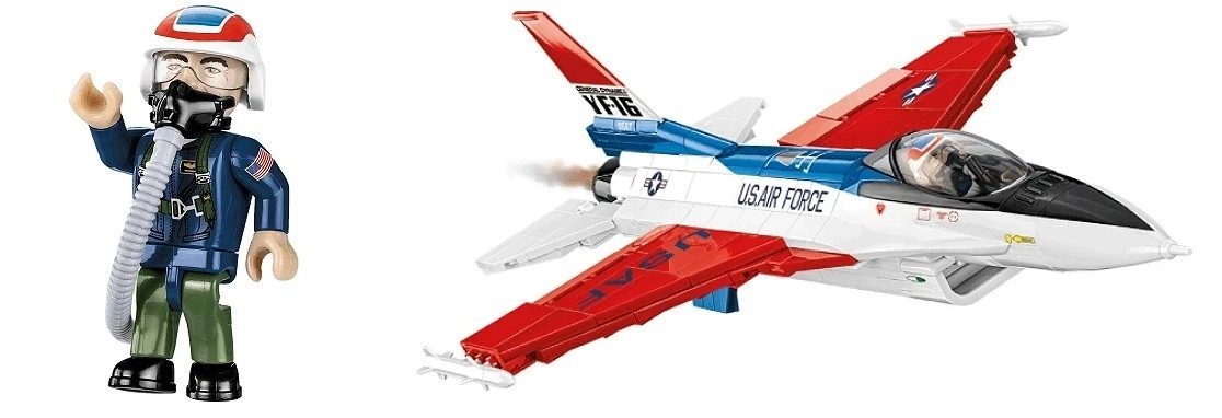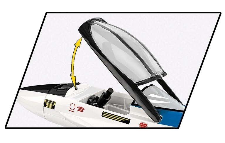 U kompletu su figurica pilota u testnoj odori s kacigom i cijevi kisikove maske, otvorivi poklopac kabine, pokretni elementi zakrilaca i kotača te robusno postolje s nazivom i mjerilom. Svi dijelovi imaju trajni tisak bez upotrebe naljepnica i kompatibilni su s drugim markama konstrukcijskih setova.