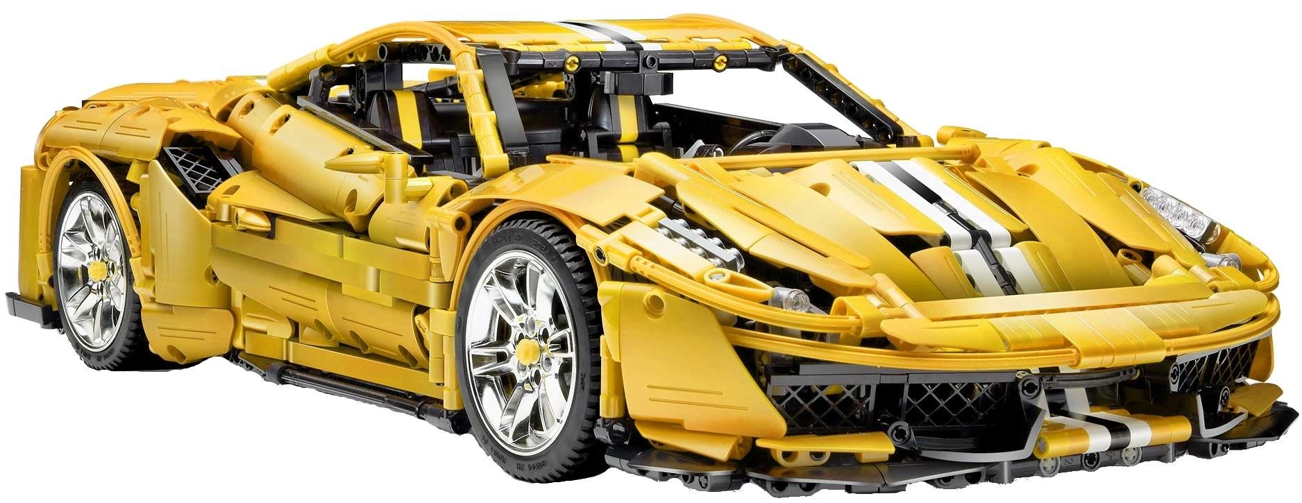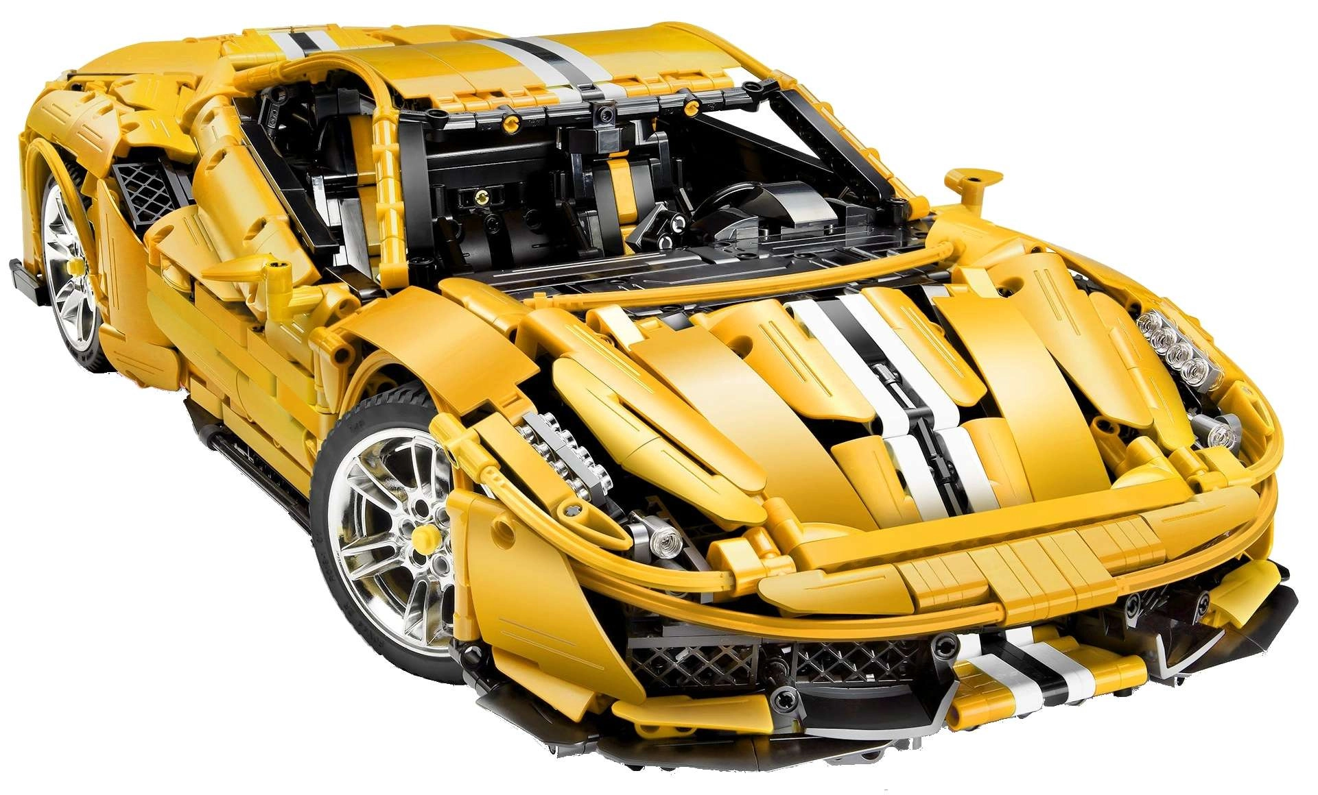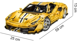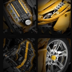 Monumentalan model žutog supersportaša ističe se realističnim linijama, bogatim detaljima i tehničkim funkcijama koje će oduševiti iskusne graditelje i tehničke entuzijaste. Zahvaljujući 2,4 GHz RC upravljaču automobil vozi naprijed/natrag, mijenja brzinu te uključuje/isključuje LED svjetla. Neovisno ovješenje kotača s amortizerima i funkcionalno upravljanje povezano s volanom pružaju autentičan doživljaj.