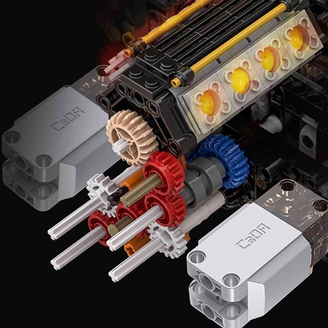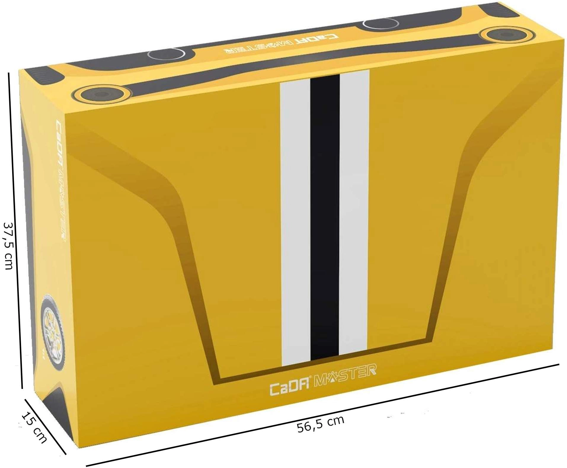 Model iz serije CADA Master razvija finu motoriku i strpljenje, a detaljne upute korak po korak vode kroz i složenije mehanizme. Žuta karoserija s kontrastnim elementima, vidljivi V8, otvarajuća vrata, poklopac i podesivo stražnje krilo čine model impresivnim izložbenim primjerkom i zabavnim RC vozilom.