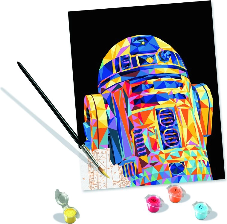 Postanite na trenutak slikar i naslikajte vlastito djelo s legendarnim droidom R2‑D2. Zahvaljujući numeriranim poljima i priloženim uputama, proces je jednostavan, a istovremeno vrlo zadovoljavajući. Iscrtana polja stvaraju čistu i detaljnu sliku koju nakon sušenja umetnete u priloženi okvir.