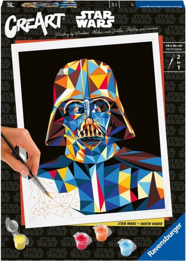 Otkrijte kreativnu zabavu uz set CreArt Slikanje po brojevima s motivom STAR WARS: Darth Vader. Set sadrži sve potrebno – čvrsto platno 24 × 30 cm, akrilne boje, kist, stalak za čašice i okvir. Slikanje po brojevima idealno je za početnike i napredne, razvija spretnost i koncentraciju te donosi radost vlastitog profesionalno izglednog djela.