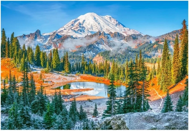 Uživajte u opuštanju uz kvalitetno slaganje s ovom slagalicom s motivom Nacionalni park Mount Rainier. Sadrži 1000 dijelova, a nakon slaganja dimenzije su približno 68 × 47 cm – idealno za ljubitelje prirode i iskusne slagalice.