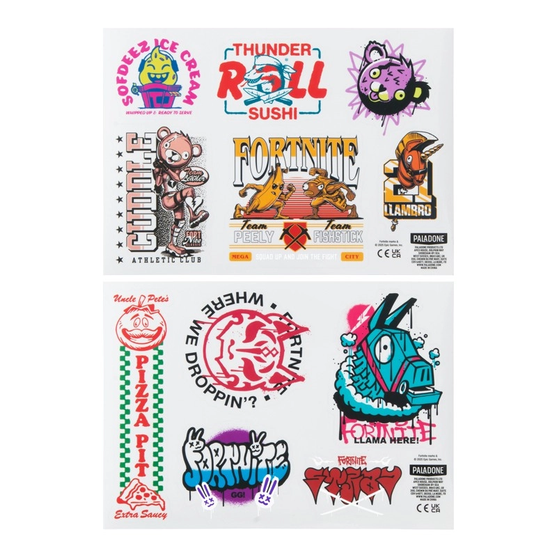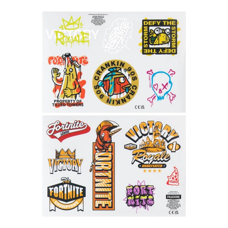 Podarite svom gaming kutku jedinstven izgled. Ovaj set tehničkih naljepnica s ikoničnim FORTNITE motivima donosi brz i zabavan način personalizacije vaših uređaja i dodataka. Naljepnice se lako apliciraju i idealne su za konzole, kontrolere, računala, laptope i druge glatke površine.