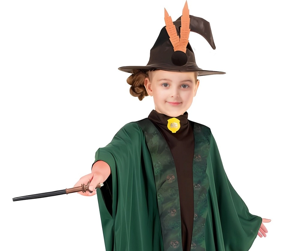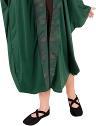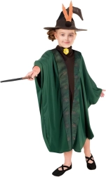 Ovaj elegantni zeleni kostim dječjeg čarobnjaka ili vještice ostavlja očaravajući dojam na svakoj prigodi. Plašt sa širokim, ležerno krojenim rukavima i dekorativnim rubom udoban je za nošenje te omogućuje slobodno kretanje pri čarolijama i igranju uloga. Šiljati šešir sa stilskim detaljima upotpunjuje čarobnjački izgled.