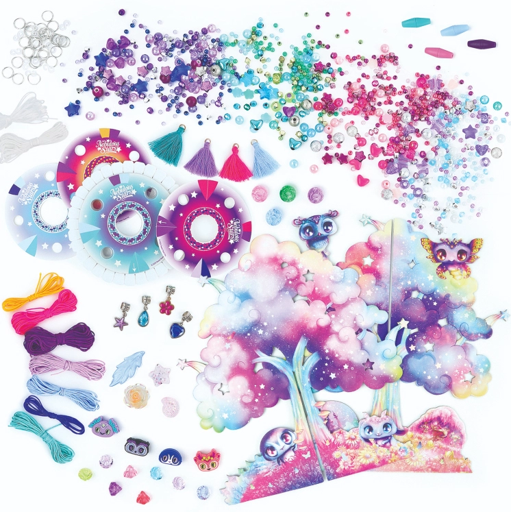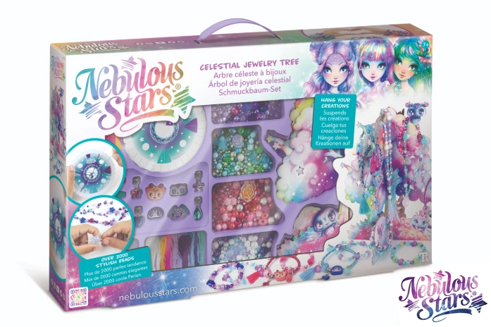 Otkrijte svijet stvaranja s kreativnim setom Nebulous Stars koji će razveseliti svakog malog dizajnera nakita. Pakiranje sadrži sve potrebno za izradu jedinstvenih narukvica i ogrlica – od šarenih uzica i perlica do stilskih privjesaka. Gotov nakit djeca mogu elegantno objesiti na Zvjezdano stablo, koje služi kao prekrasan stalak i ukras sobe.