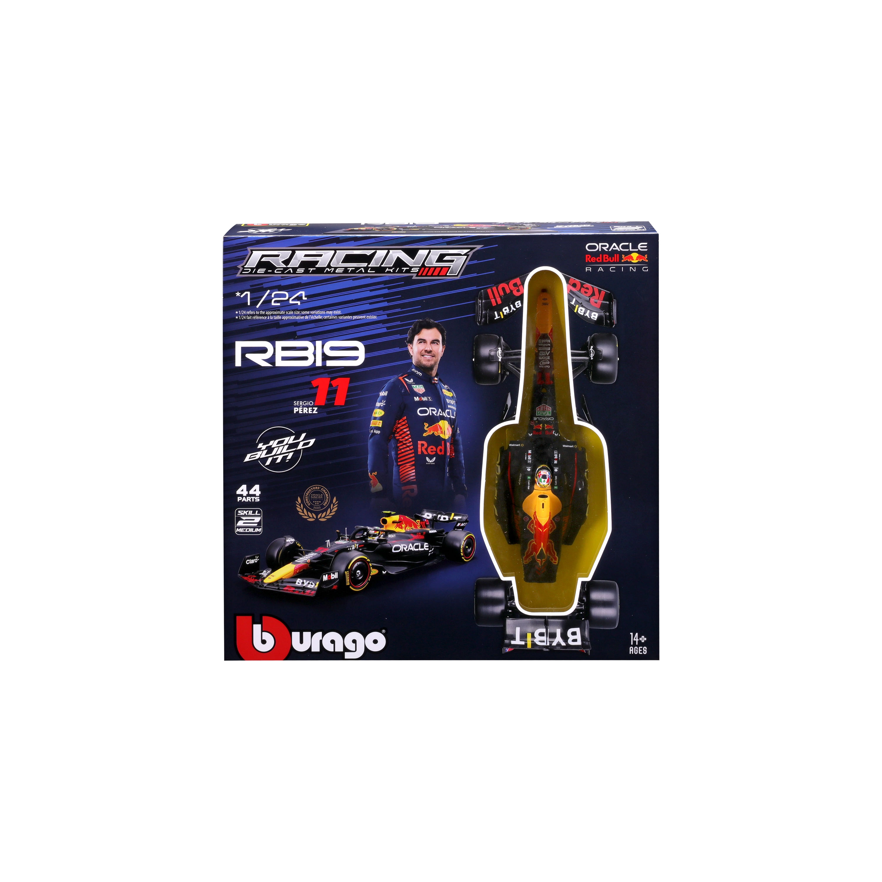Paket sadrži 44 dijela za zabavnu montažu i postolje za izlaganje gotovog modela Sergio Pérez #11.