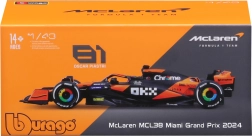 Ovaj detaljno izrađen model McLaren MCL38 u mjerilu 1:43 predstavlja timske boje za sezonu 2024 i posebno izdanje Senna Edition. Nudi realistične aerodinamičke elemente, precizan oblik prednjeg i stražnjeg krila, kokpit s figuricom vozača i autentične naljepnice sponzora. Zahvaljujući kompaktnim dimenzijama idealan je za izlaganje na polici ili radnom stolu.