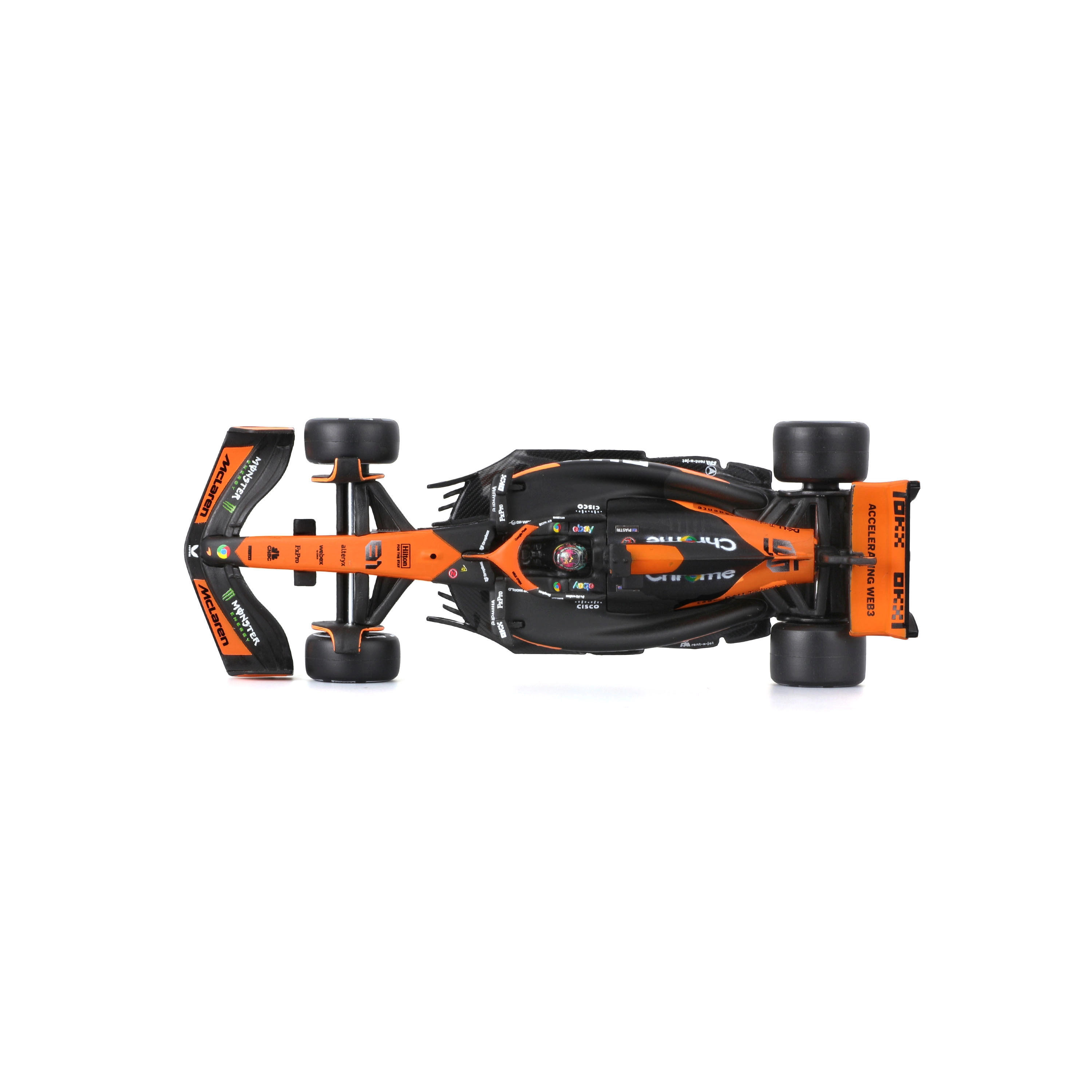 Ikonična kombinacija narančaste i crne s timskim logotipovima i trkaćim slick gumama razveselit će svakog ljubitelja F1.