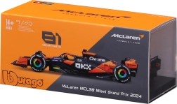 Prozirni pokrov na crnoj podlozi s natpisom „McLaren MCL38 - Miami Grand Prix 2024” štiti model od prašine i omogućuje izlaganje sa svih strana.