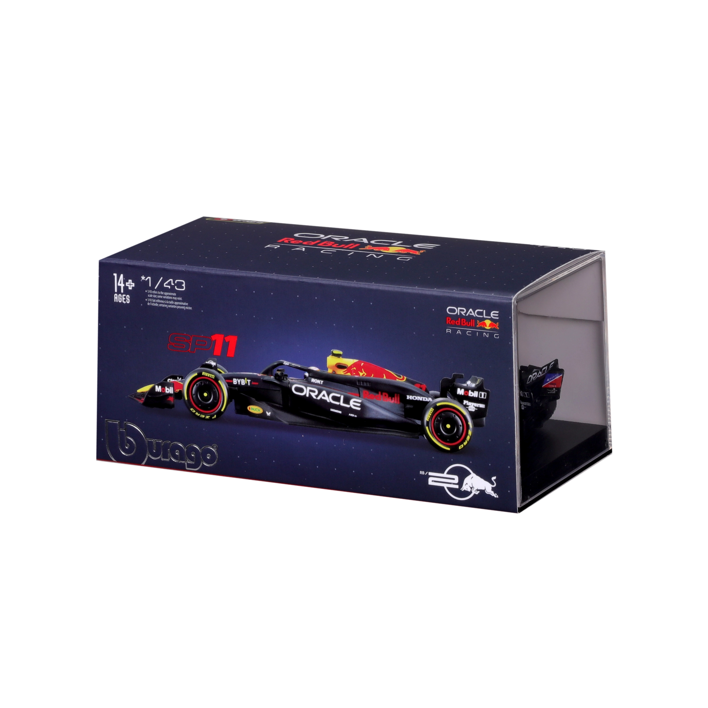 Ovaj metalni model Bburago impresionira realnim proporcijama i vjernom aerodinamikom – od prednjeg i stražnjeg krila do detaljne kabine s vozačem. Precizan tisak s logotipovima sponzora i timskim bojama naglašava trkaći karakter vozila RB20 sezone 2024.