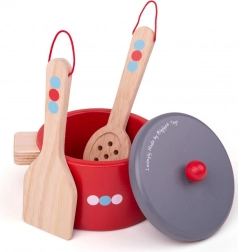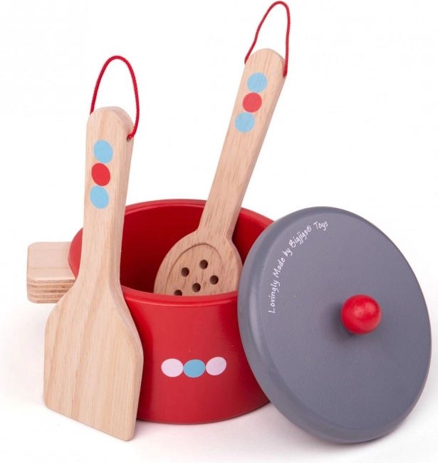 Bigjigs Igračke Drveni Set Posuđa s Točkicama idealno je rješenje za sve male kuhare. Djeca mogu s ovim setom kuhati širok raspon jela i poboljšati svoje kuharske vještine. Set sadrži tavicu, dva lonca i drveni pribor. Savršen je dodatak svakoj dječjoj kuhinji.