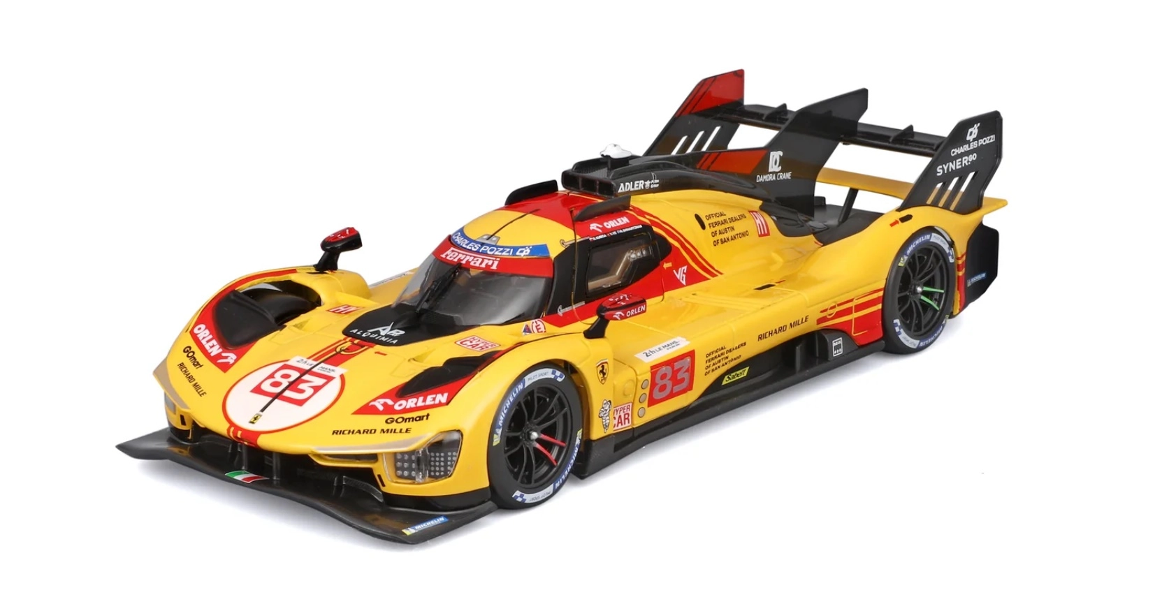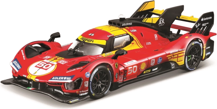 Model Ferrari 499P u mjerilu 1:43 marke Bburago donosi autentične proporcije, trkaću grafiku i pomno izrađene detalje inspirirane nastupom automobila s brojem 83 na 24h Le Mans 2024. Zahvaljujući prozirnom hardcase omotu, idealan je za sigurno izlaganje i zaštitu od prašine.