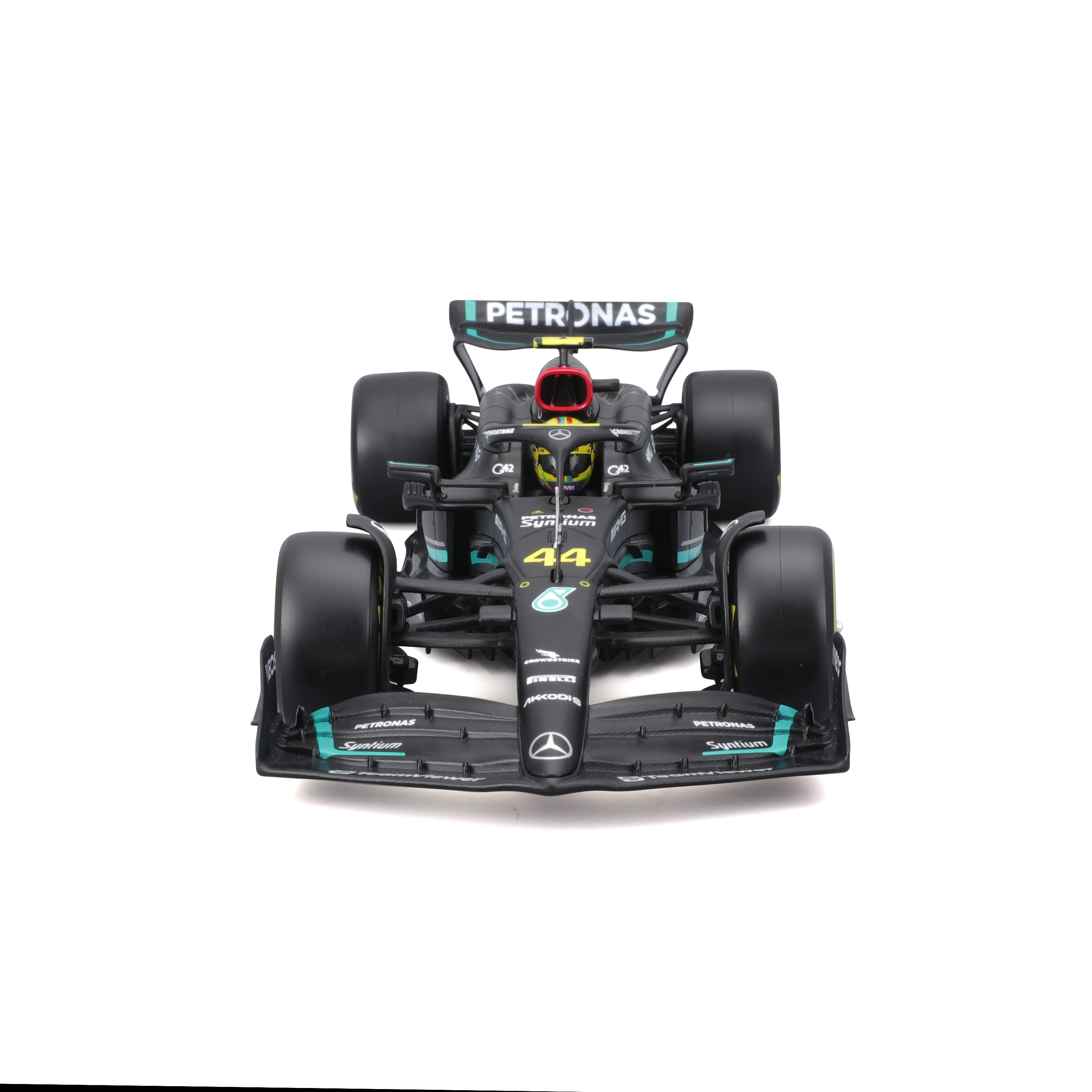 Model vjerno prikazuje aerodinamičke elemente bolida W14 E, uključujući prednje krilo, ovjes i kokpit, s preciznim naljepnicama i brojem 44.