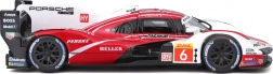 Precizne proporcije PORSCHE 963 sa splitterom, perajama i masivnim stražnjim krilom za autentičan trkaći izgled u vitrini.